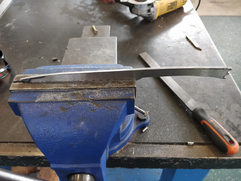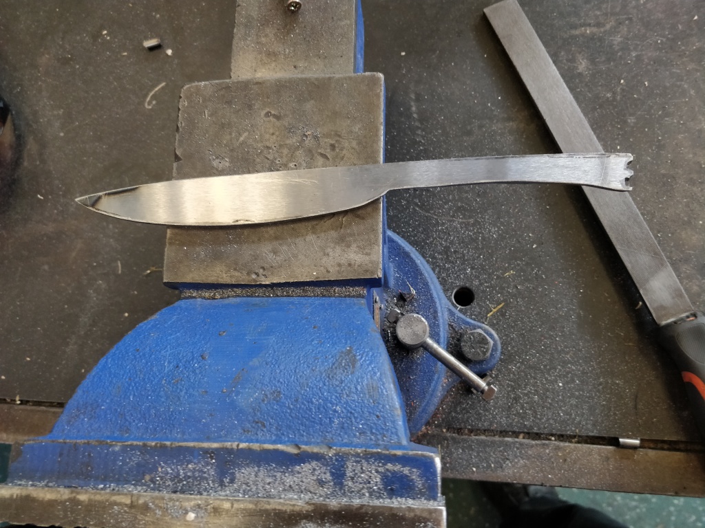 For each knife, I started with some steel bar that I copied the outline of the knife on. I then cut out the blank with an angle grinder.